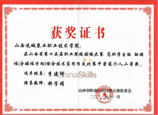 近日,山西省第十五届职业院校技能大赛高职学生组融媒体(全媒体方向)综合技术应用项目比赛结果公布,我校作为非专业院校且是第一次参赛,爆出大赛冷门,成绩骄人:信息系李鹏旗与李林泉夺得“个人一等奖”,李健琦与杨建涛获“个人二等奖”,4位指导教师乔琴艳、杨金劳、郝学娟、王迪华皆获“优秀指导教师”荣誉。