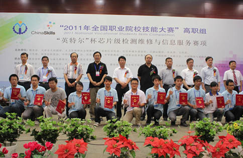 6月24日,由教育部、工信部、天津市政府等13家单位共同主办的“2011年全国职业院校技能大赛”高职组比赛正式拉开帷幕。其中的芯片级检测维修与信息服务赛项共有来自全国36个省市的60只代表队参与竞赛,比赛分设一等奖、二等奖、三等奖及优秀奖若干。在带队老师王英师,指导老师王迪华、杜朝的带领下,我系硬件班学生李岩、贺章林在该赛项中克服种种困难和不利条件,荣获三等奖。