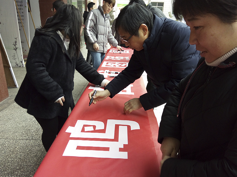 上午9点50,我系师生在教学楼前开展悼念活动。主持人回顾了南京大屠杀的历史事件,并重申了十二届全国人大常委会第七次会议决定的南京大屠杀国家公祭日的意义, 全体师生对南京死难的同胞们至以深沉的哀悼,最后全体师生在纪念条幅上庄重的写下了自己的名字。