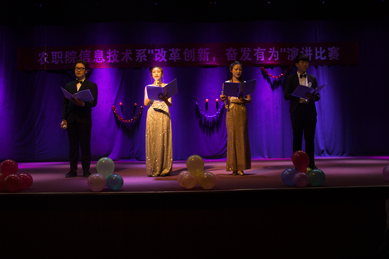 在全院上下深入开展“改革创新奋发有为”大讨论的背景下,由我系组织的主题演讲比赛于2019年3月14日晚七点半于综合三楼举行。比赛现场首先是集体起立高唱国歌,然后是院团委孔梅岩副书记致辞,对此次大讨论的目的、意义和学院部署做了说明,并寄语广大学生,锻炼技能,奋发有为,为学院发展和个人成才而努力。随后参赛的选手依次登场,围绕着改革、创新、奋进、青年、爱国等主题为全系师生呈现了一场精彩的演讲比赛。