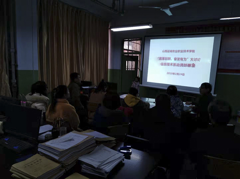 2019年2月24日上午九点,我系全体教师在系部办公室召开了“改革创新、奋发有为”大讨论动员会。主要学习了进行本次大讨论的原因、主要任务、重要环节以及预期成果等。
