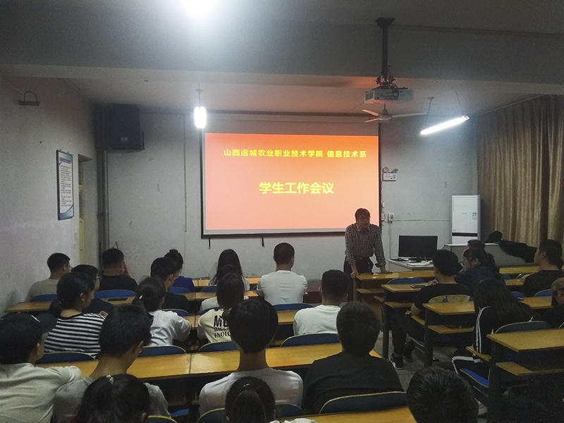 2019年4月25日下午,taptap点点官方网站信息技术系在多媒体教室召开春季学生工作会议。系部主任王英师结合学院中心工作和当前系里学生综合表现,着重围绕:爱党爱国、政治敏感、校纪校规、文明行为、安全意识、评模推优等内容对学生进行耐心讲解,教育引导学生把习近平新时代中国特色社会主义思想入脑入心,发扬五四精神、文明诚信、坚定信念、努力学习、积极向上,从自己做起,用实际行动和优异表现为中华人民共和国成立70周年献礼。