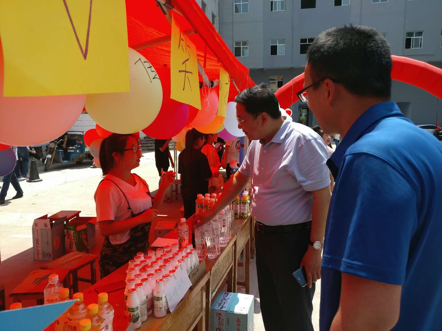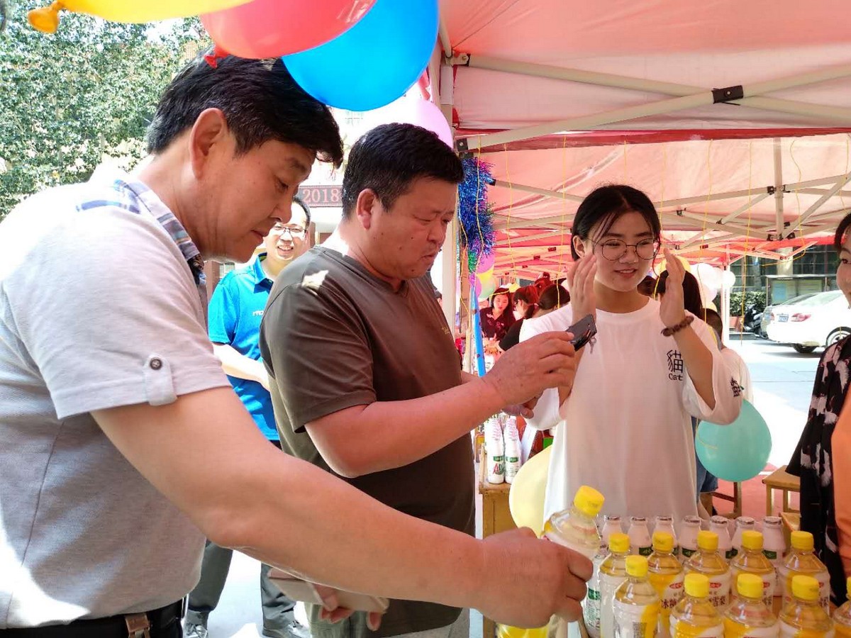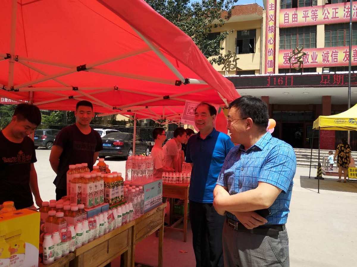同学们在院领导的鼓励下,冒着炎热,分工协作,有的不甘于校园内的市场,去校园外销售,有的拉来合作伙伴,搞起了扫微信送一瓶水的活动,可以说创新无限,花样百出。