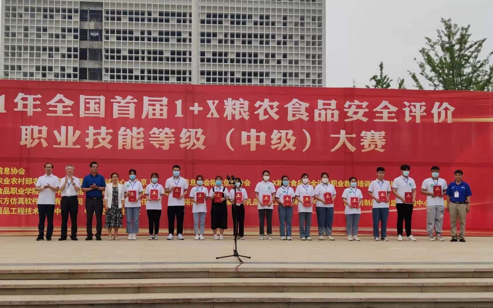 2021年6月25日,由中国信息协会指导,农业农村部农产品质量监督检验测试中心(北京)、中国信息协会粮农信息分会、1+X粮农食品安全评价职业教育培训评价组织联合主办,漯河食品职业学院与中农粮信(北京)技术服务有限公司共同承办的2021年全国首届1+X粮农食品安全评价职业技能等级(中级)大赛在河南省漯河市漯河食品职业学院成功举办。