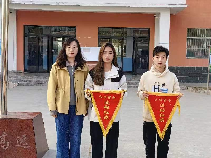 王蕊老师通报了上周教室与宿舍情况,并颁了流动红旗,强调了每天上课迟到情况和宿舍卫生以及违禁品,以上都会计入班级百分制量化中。