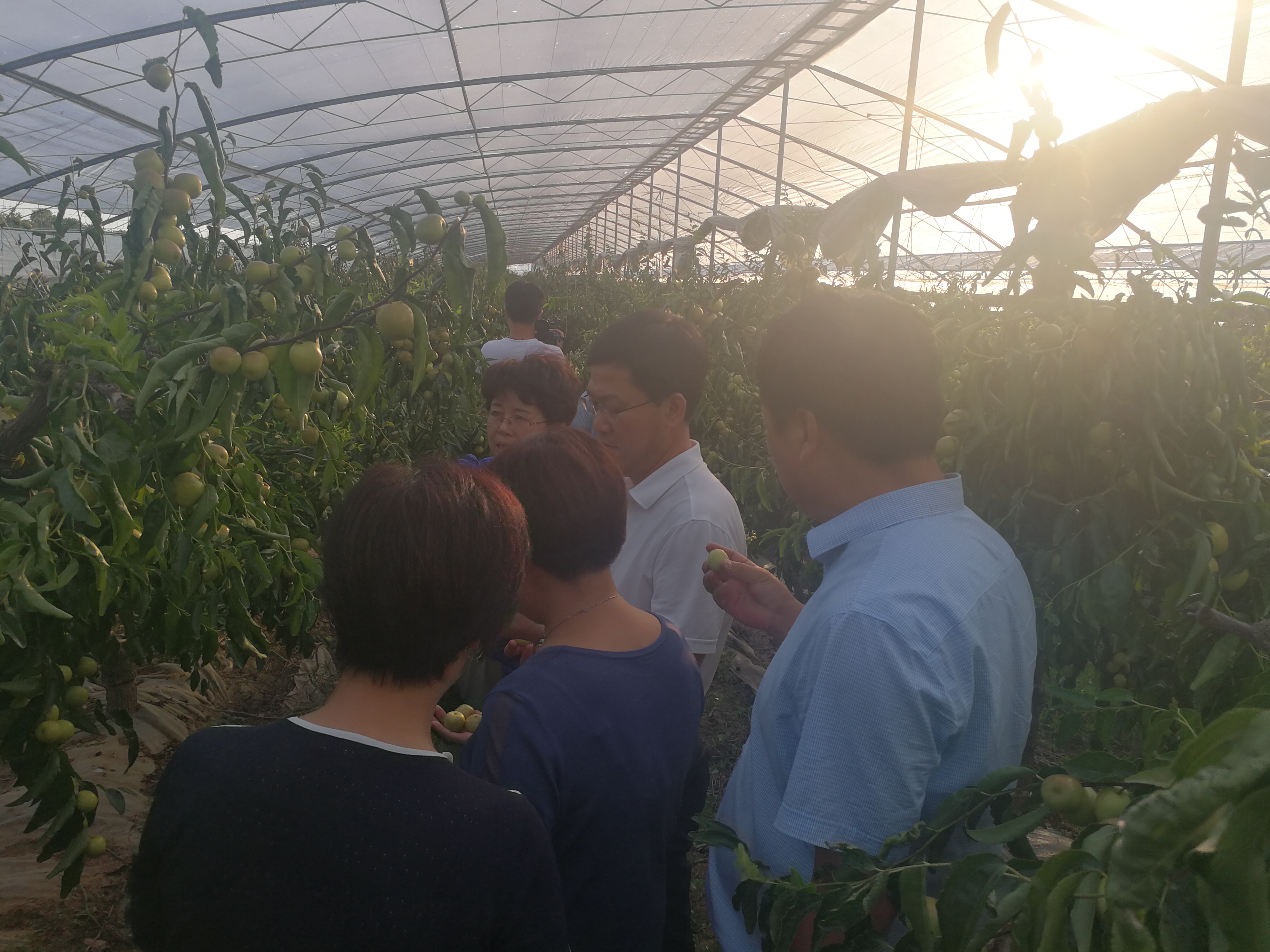 在大门口,实习农场场长刘湛详细介绍了实习农场各区域的种植情况,副院长竹常青向薛区长一行汇报了学院对实习农场的发展思路和存在的困难,希望区政府能继续支持学院办学发展。随后,薛区长一行参观了冬枣种植大棚, 农林工程系主任景秀文详细介绍了今年冬枣的长势、施肥等情况,并就全区今后冬枣种植的发展提出了建议。