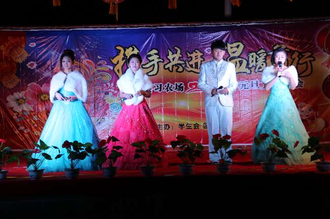 2014年12月25日,星期四,晚7点,在taptap点点官方网站实习农场的广场上,张灯结彩、乐声飘扬、霓虹闪烁,同学们忙前忙后,奔走相告,全体演员正在静静的候场,实习农场 “携手共进 温暖前行”2015年元旦文艺晚会即将拉开帷幕,就连空气中也弥漫着欢乐的气息,热情充满了整个广场,严冬的寒意一扫而光。