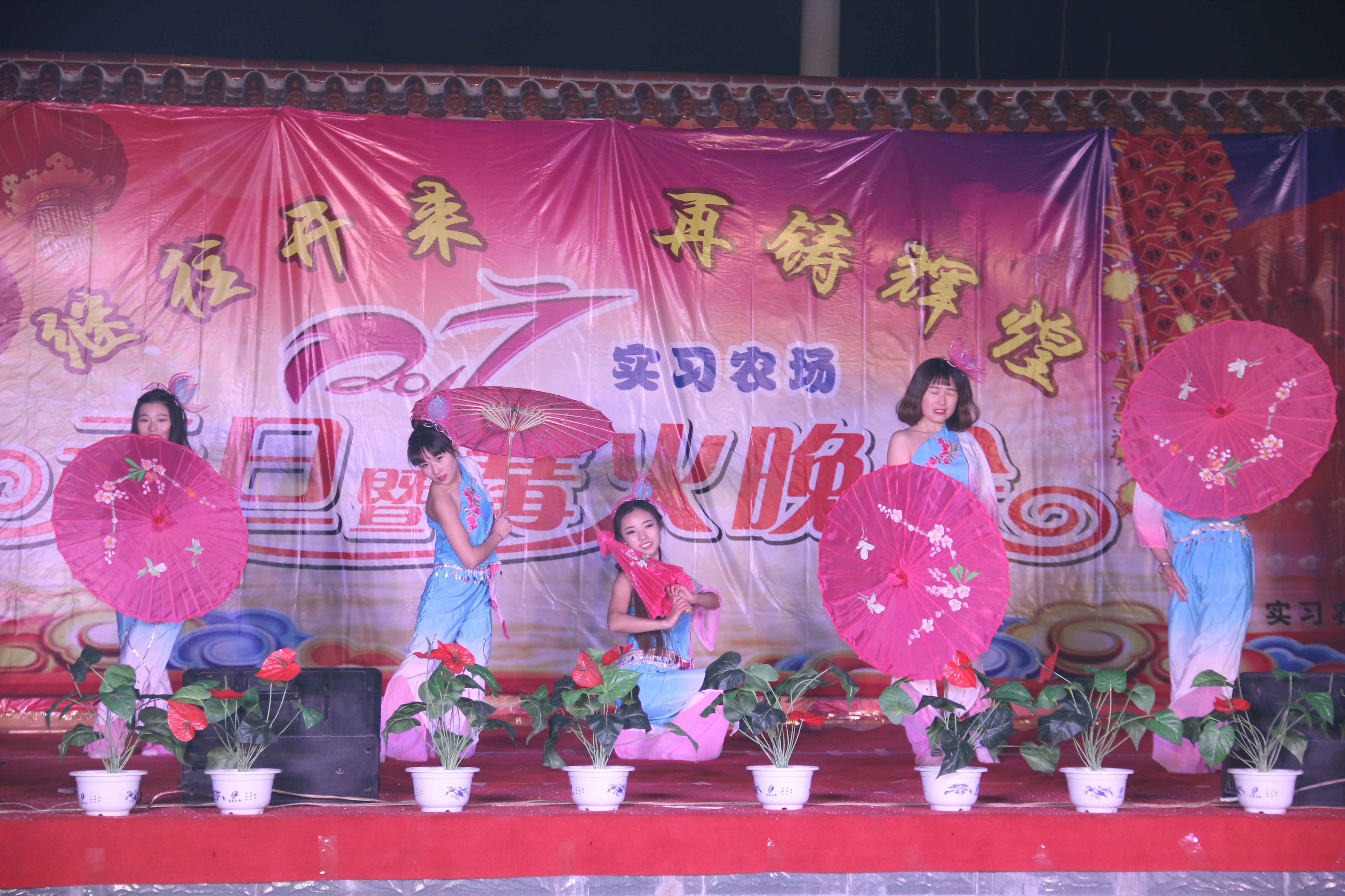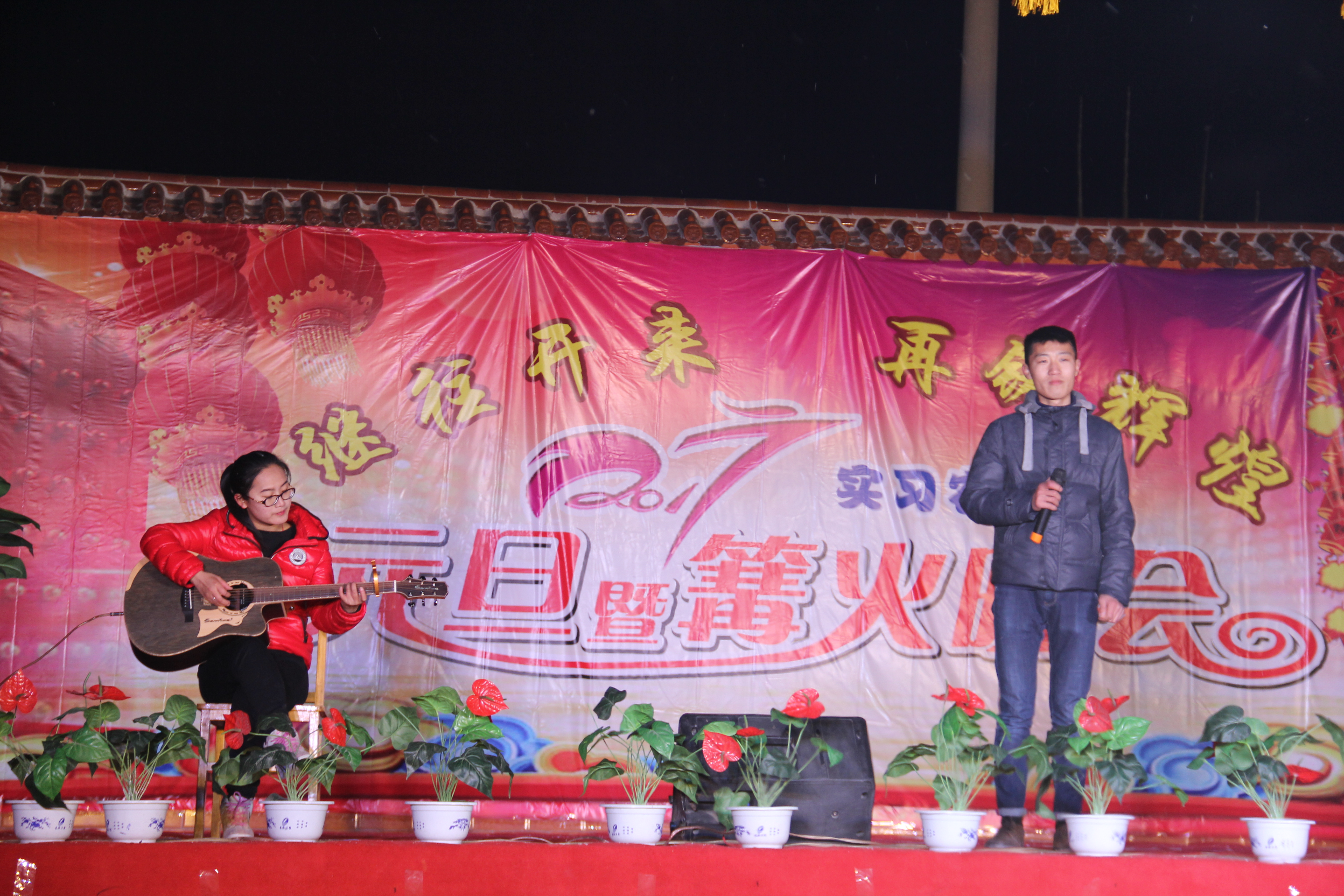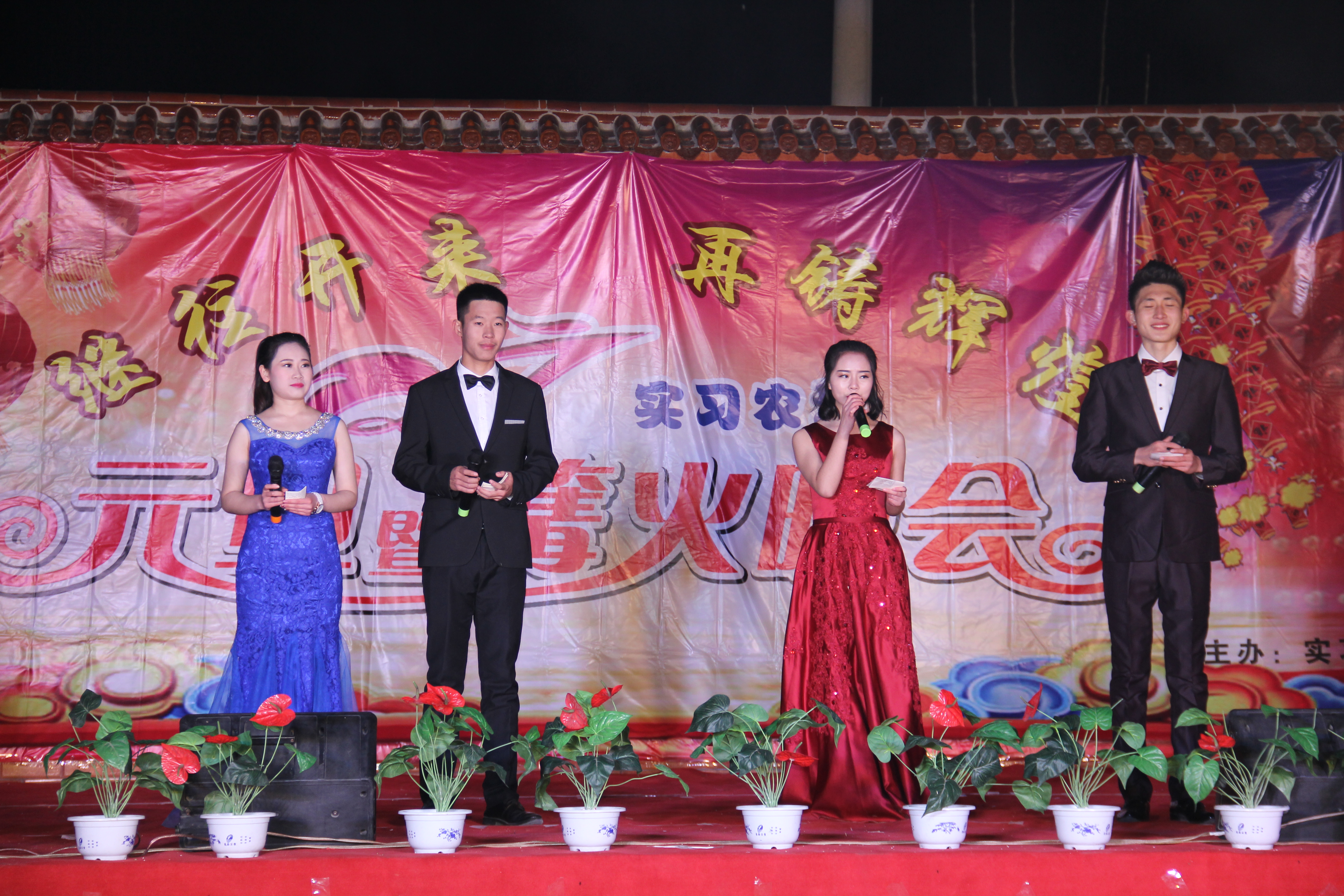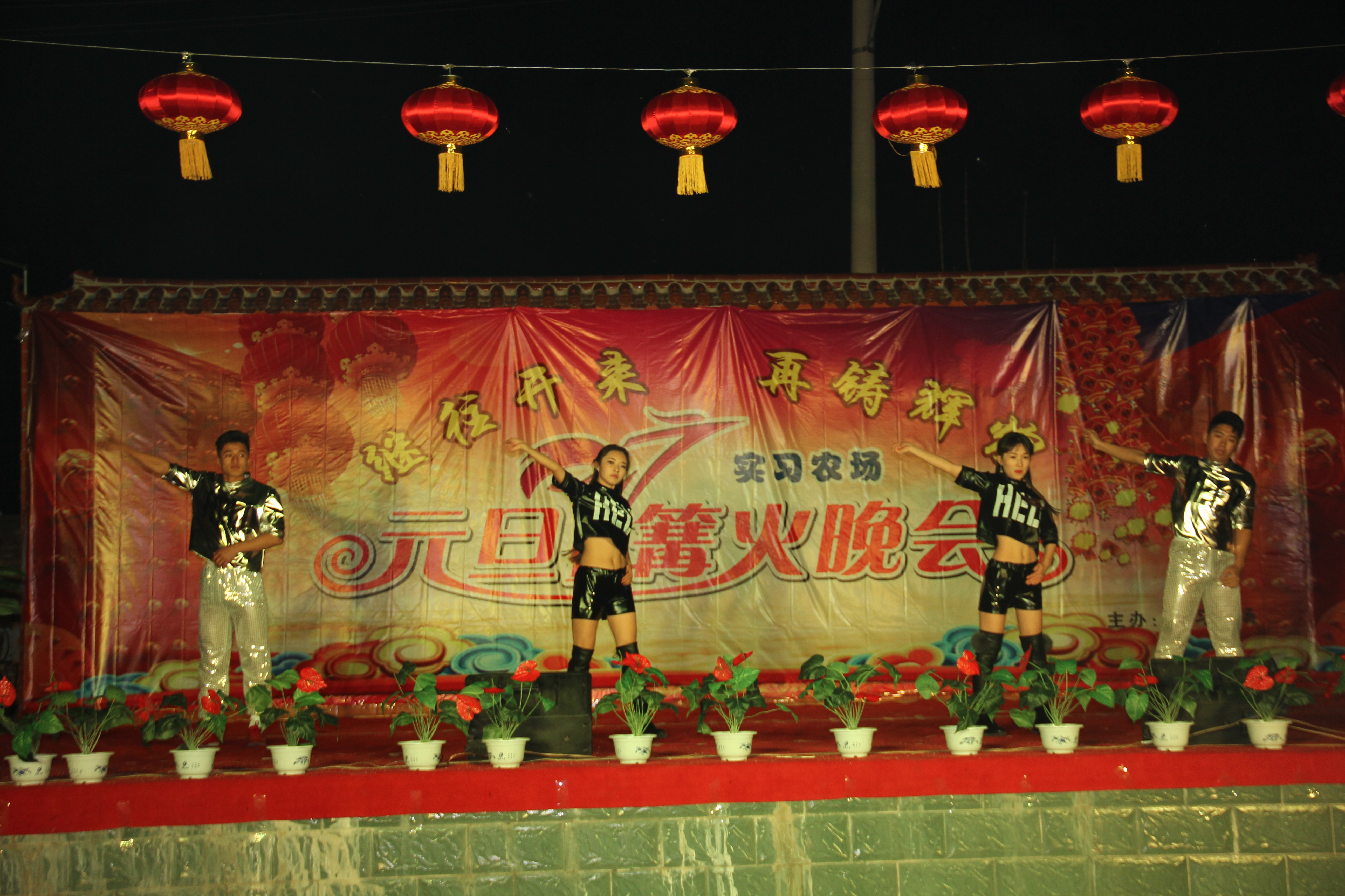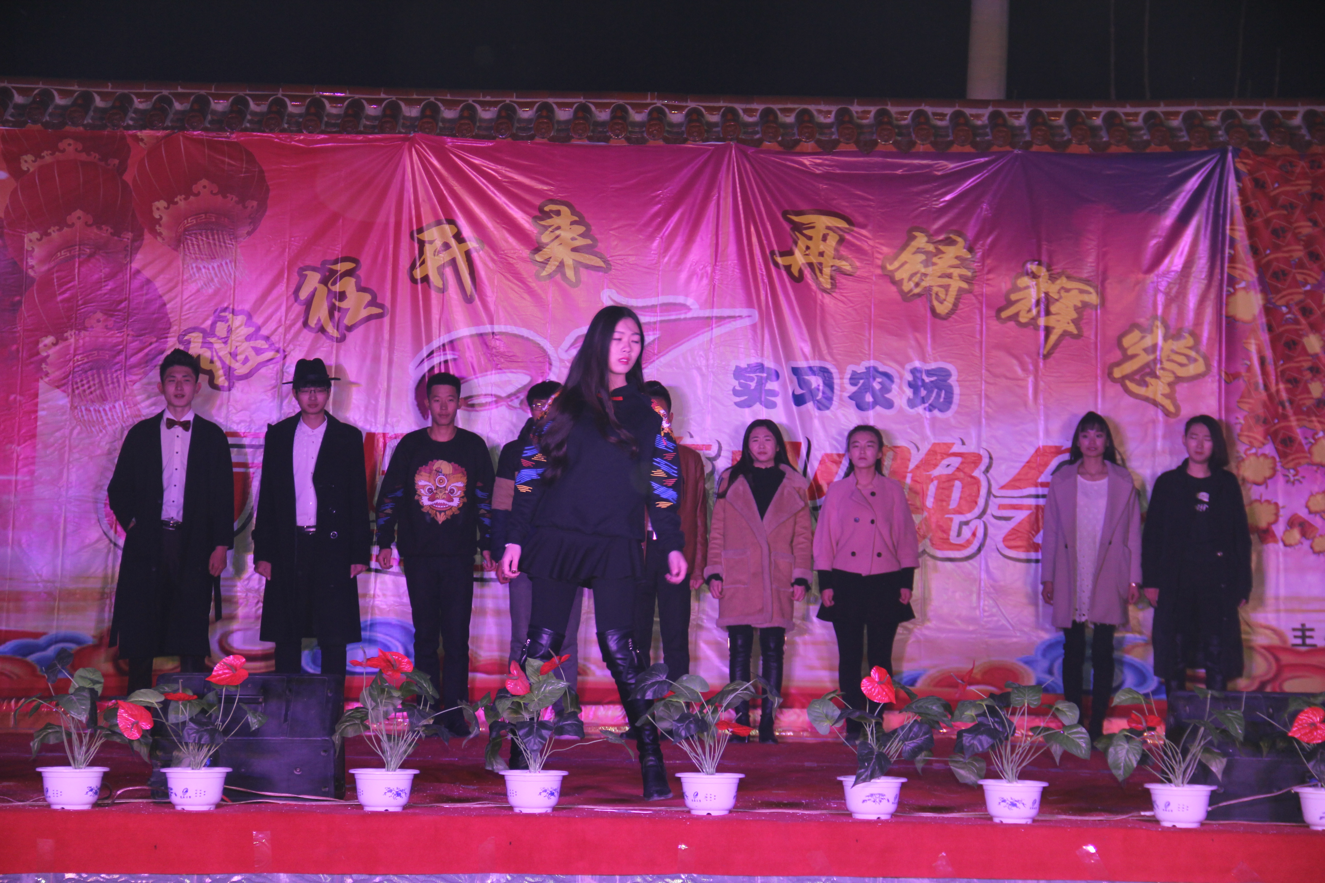 晚会现场,副院长竹长青同志致辞,为农场全体师生送去新年的美好祝福。晚会在一段激情的开场舞《吉祥颂》中拉开了序幕, 瞧,双簧《放鞭炮》上台啦!为观众带来了一股浓浓的新年气息;突然,舞台灯光大亮,爵士舞的舞者们的登场了,他们个个舞姿潇洒帅气、动感十足,紧接着《时装走秀》、古筝弹奏与书法表演《青花瓷》将晚会的气氛推向了高潮,大家都跟着音乐嗨起来,接下来的现代舞《手枪舞》《笑傲舞林》、歌曲《小幸运》《平凡之路》、《丫头》、小品《小宝金店》《慢半拍》、哑剧《诊室风波》等节目都非常的精彩,现场的掌声、欢呼声此起披伏,不绝于耳,随后,全体师生共聚篝火旁,载歌载舞,欢庆元旦。