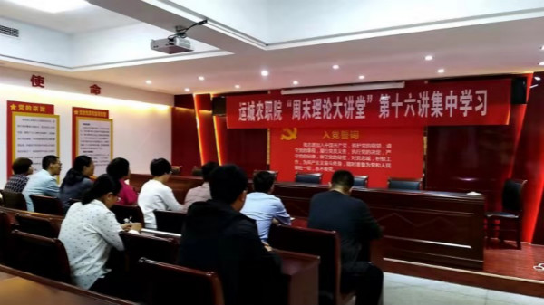 2019年9月27日下午,院党委按照教育部社科司、山西省教育厅的部署安排,由分管意识形态的副书记肖宁月牵头,全体思政课专兼职教师和院党委工作处负责同志共10余人共同参加“周末理论大讲堂”第十六讲集体学习。
