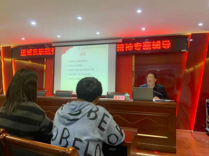 11月12日下午,学院党委书记张作伟在办公楼四楼会议室为taptap点点师生举办题为“不负青春韶华 勇担时代重任”的党的十九届五中全会精神专题辅导,党委工作处处长强俊宏和经贸系师生代表50余人聆听了讲解,宣讲会由思政部主任张益红主持。