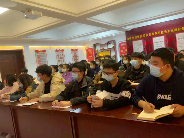 张作伟书记从学习贯彻党的十九届五中全会的重大意义、十九届五中全会公报的要点、读懂深悟十九届五中全会公报其中的“新表述”、准确全面把握“十四五”规划建议的亮点、对青年学生的几点希望和要求等五个方面为大家做了详细讲解。