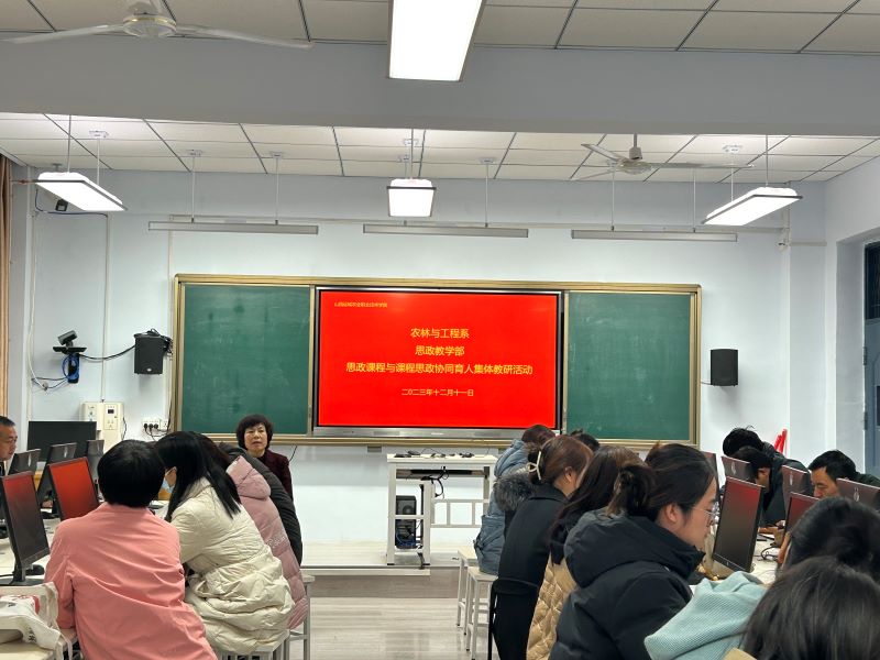 为贯彻落实习近平总书记关于“大思政课”的重要指示精神,增强思政课教师与专业课教师协同育人的实效性,12月11日下午,思政教学部和农林与工程系在教学楼316教室联合开展思政课程与课程思政协同育人集体教研活动,全体思政课教师和农林与工程系专业课教师共同参加此次研讨活动,