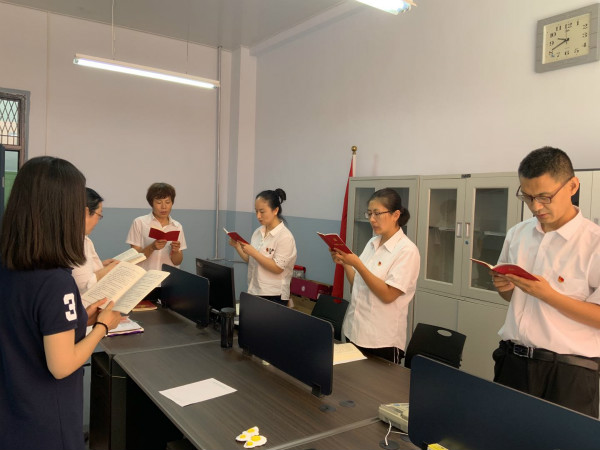 在主题党日活动中,全体党员按照“6+”模式依次开展活动,大家在支部宣传委员董萍的带领下集体重温了入党誓词,集体诵读了党章中党员义务和权利的章节内容,现场缴纳本月党费,集体学习了近平总书记三篇光辉文献和视察山西的重要讲话精神,共同观看了红色影片《建党伟业》。大家还就在运城市博物馆条山风云展厅的参观学习进行了交流发言。