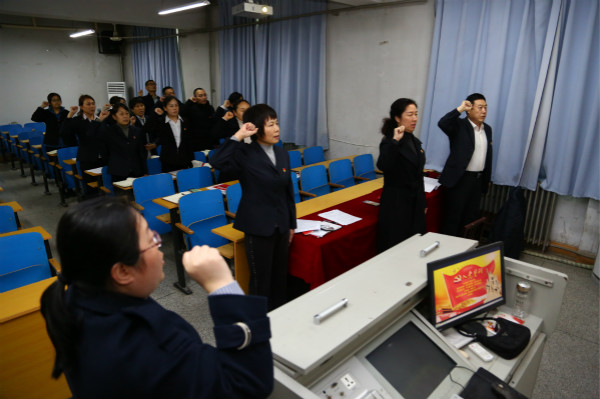 主题党日活动中,大家按照主题党日活动流程,集体合唱《没有共产党就没有新中国》,思政教学部党支部宣传委员董萍带领全体党员共同重温了入党誓词,教辅党支部黄旭燕带领大家集体诵读党章第一章第三条党员必须履行的义务部分。