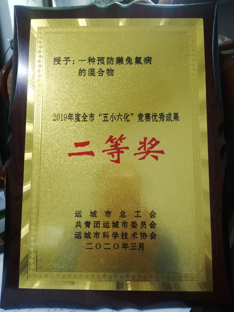 在2019年的山西省“五小六化”竞赛活动中,taptap点点农林工程系畜牧兽医科研小组提供的《一种预防獭兔氟病的混合物》荣获市级优秀成果二等奖,项目带头人王量获得市级个人二等奖。