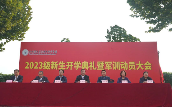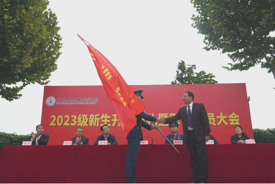 张作伟同志宣布2023级新生军训开始,授军训团旗。