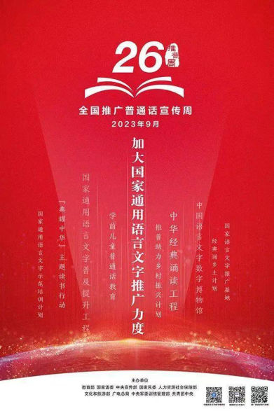 经国务院批准,自1998年起,每年9月第三周为全国推广普通话宣传周(以下简称推普周)。根据《教育部等九部门关于开展第26届全国推广普通话宣传周活动的通知》,2023年9月11日至17日举办第26届推普周。本届推普周的主题为“推广普通话 奋进新征程”。