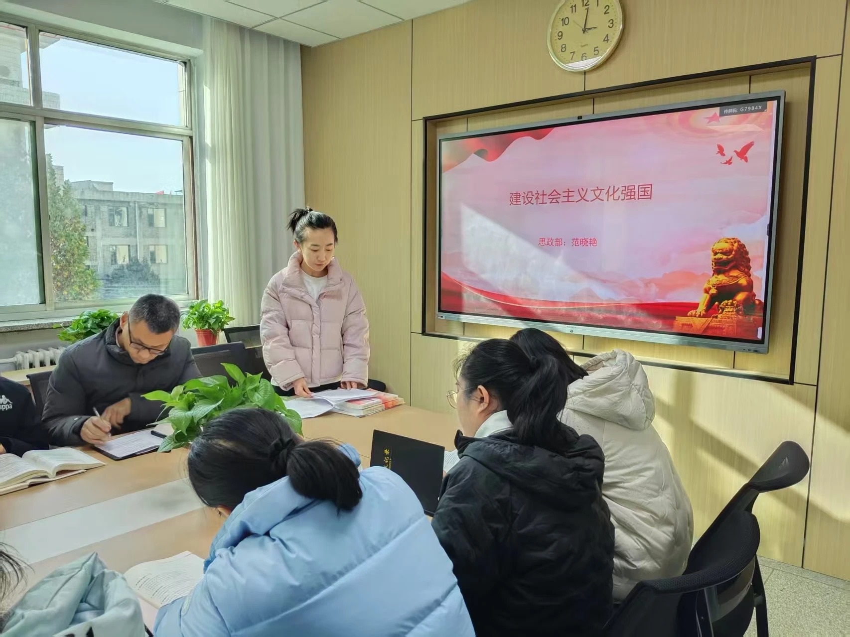会议伊始,思政部负责人张雷介绍了《习近平新时代中国特色社会主义思想概论》集体备课会的统筹规划。思政教师范晓艳立足课程第十章“建设社会主义文化强国”的具体内容,紧扣“坚定文化自信、建设文化强国”这一核心观点,进行了20分钟深入浅出的专题教学展示。其教学设计精巧,案例生动,充分展现了青年教师的扎实功底与教学风采。
