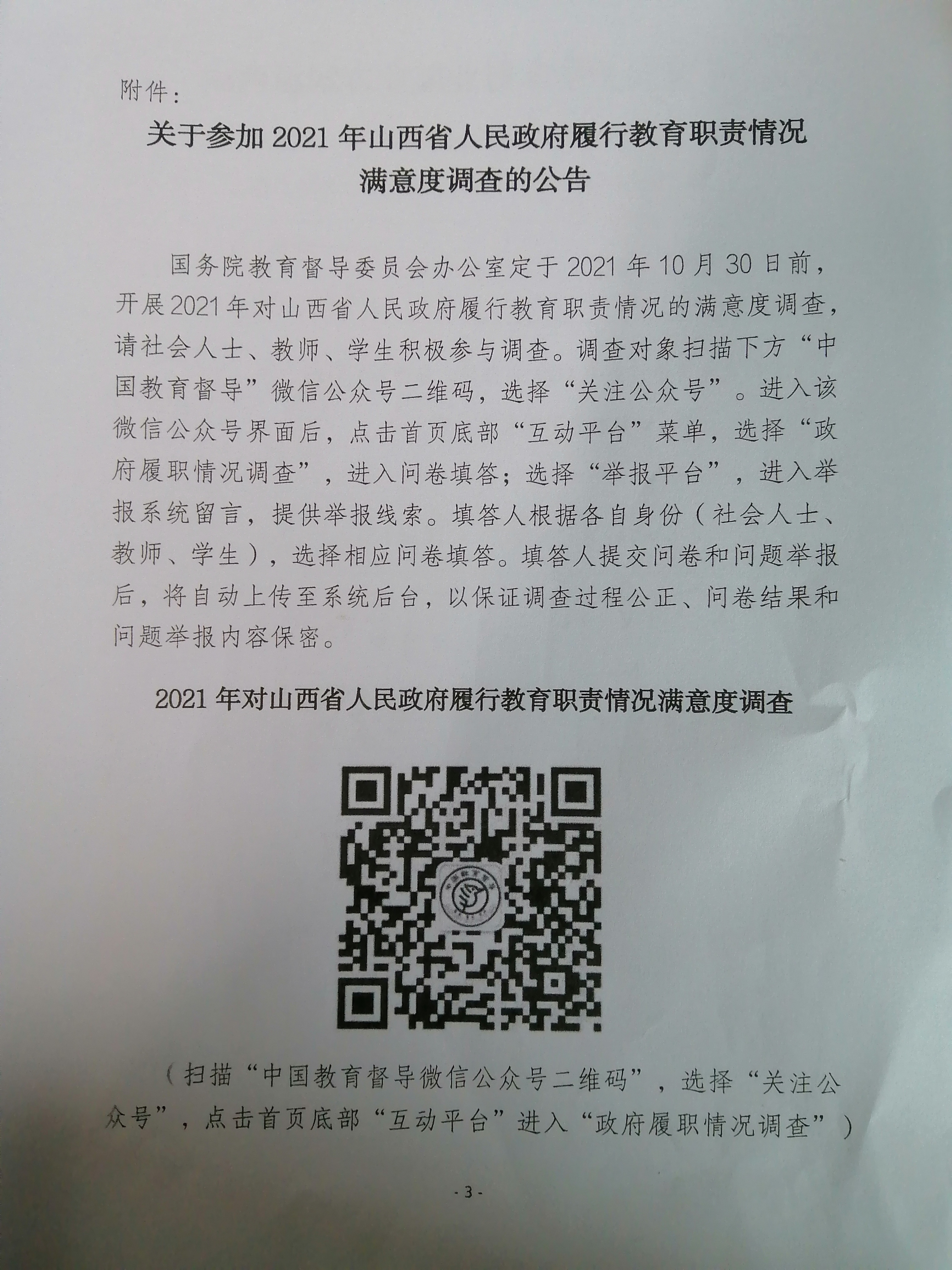 关于参加2021年山西省人民政府履行教育职责情况满意度调查的公告