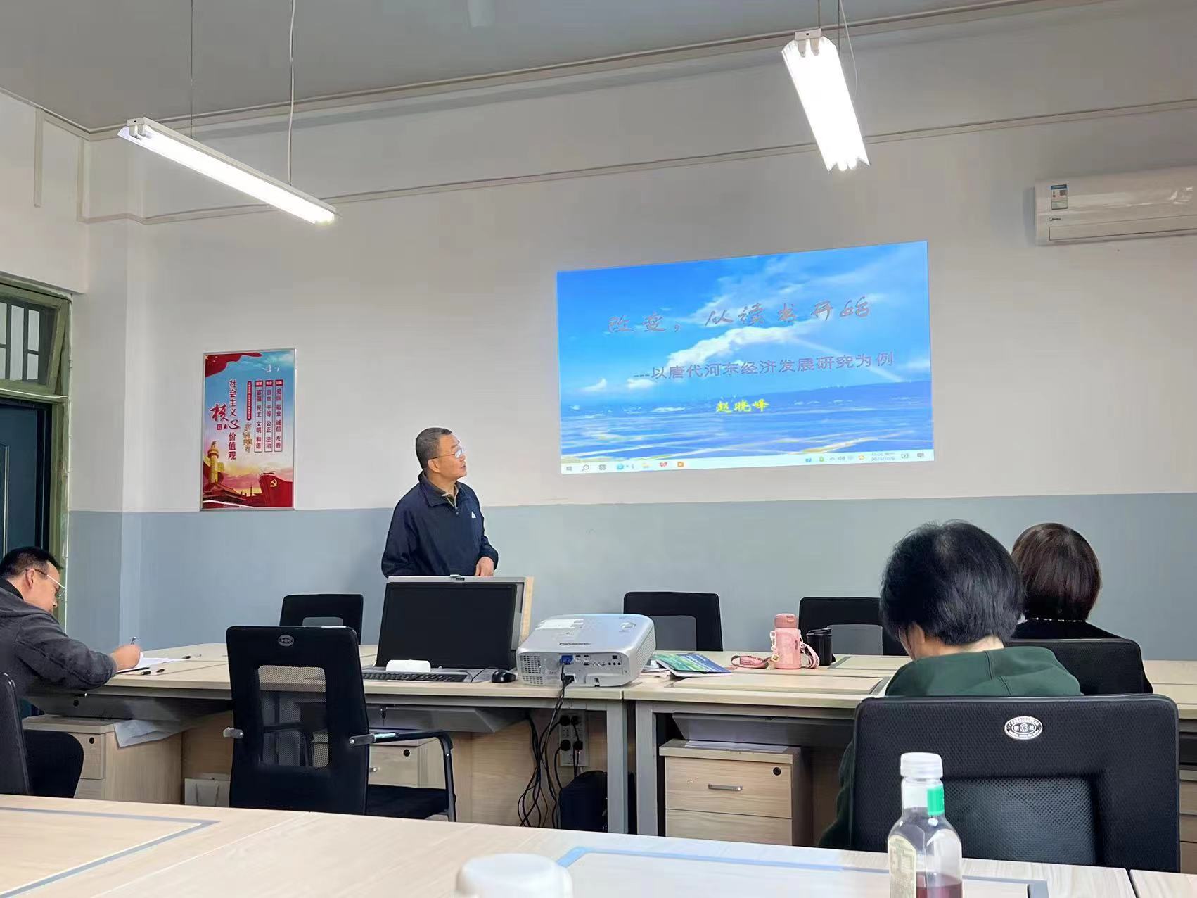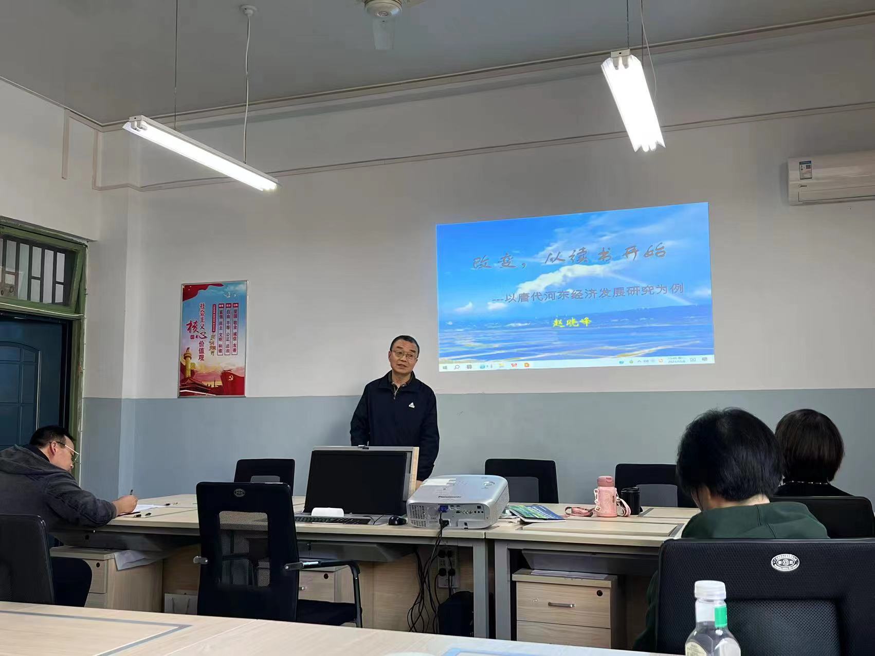 赵教授从读书的意义入手,结合自己的成长历程,讲述了读书对他人生的意义。要求全系教师要多读书,读好书,以如何通过读书搜集资料,为科研积攒实力。赵教授一直以来,立足河东,深挖唐代河东经济,在唐代河东经济方面颇有建树。在讲座中,赵教授还谈了他如何从助教到教授的职称历程。