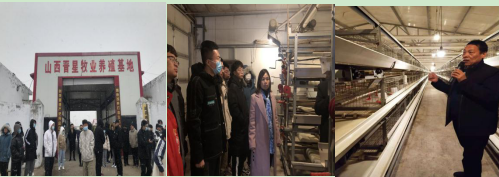 大家第一站到达了晋星牧业肉鸡养殖基地。为了表达对我系师生的热烈欢迎,李董事长亲自带领学生们进入养殖场生产区参观,并给学生们讲解鸡舍内的环境调控设施,使大家对于肉鸡养殖的鸡舍内环境有了一个直观的认识。晋星牧业更是以三黄鸡的规模化养殖填补了我省优质肉鸡养殖的空白,这种对于市场的精准定位更是让学生们叹为观止。