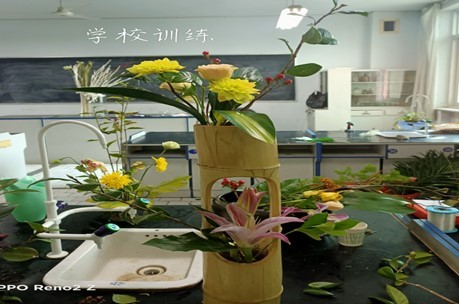 七月初杜老师通知我到运城实训时我欣然前往,去学校训练之前我先去花店实习了一个多月,在这期间学到了花卉的认识和养护等实用基础知识。八月底我去学校向杜老师和樊老师学习专业知识,系统学习了中国传统插花和现代花艺相关的设计创意,立体结构色彩组合,植物搭配等知识。在同学们还没有开学的时候就已经在学校学习一个月的时间,才取得了现在的成果,这离不开老师的辛勤栽培和自己的不懈努力。