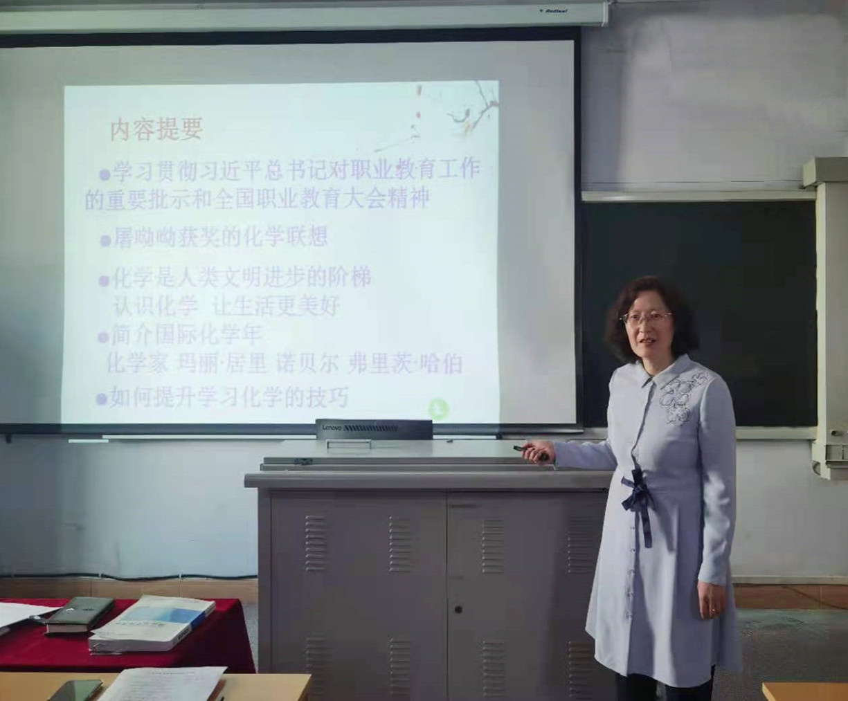 5月24日基础教学部主任陈玉梅给农林与工程系畜牧兽医专业学生做了精彩的讲座,讲座从屠呦呦获奖的化学联想引入化学五个分支对医学发展及新药物合成的贡献,介绍国际化学年及诺贝尔、居里夫人等化学家在化学领域做出的伟大成就,在国际化学年主题歌声中结束了讲座,同学们听讲的很认真,受到了很大的鼓舞。讲座主要弘扬科学家大国工匠、精益求精的品质,让青年学生欣赏和了解化学,培养他们对于化学未来发展的热情,随着现代化学的迅速发展,化学与医学的相互渗透和合作有着越来越广阔的前景。化学,必将让生活更美好!