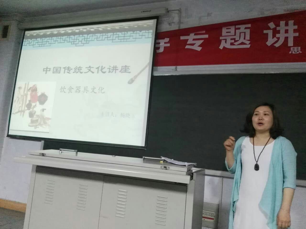 5月19日下午,基础部教师杨晓玉在实训楼多媒体教室给计专48、49两个班级60余名同学进行了一次传统文化讲座。