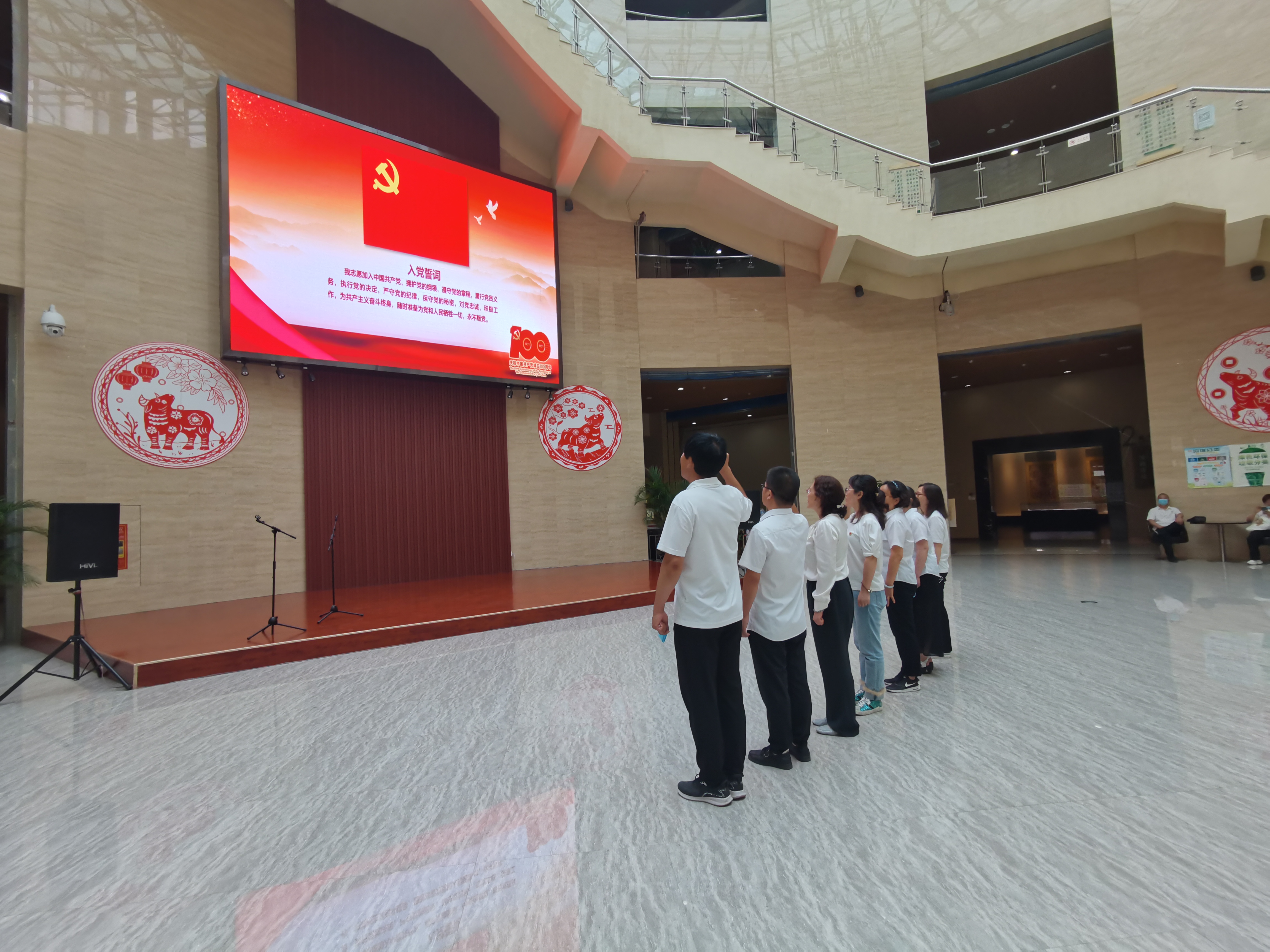 参观活动中,全体党员重温了入党誓词,激发了党员干部的爱国主义情怀,体现了党员同志们对中国共产党的无限忠诚和坚定的初心使命。